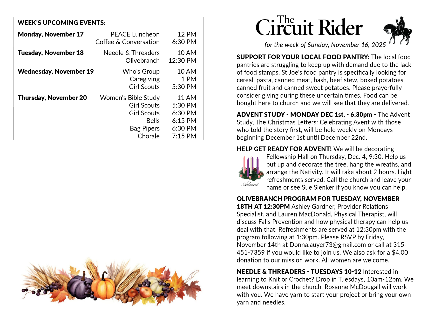 CIRCUIT RIDER FOR THE WEEK OF 11/16/2025
