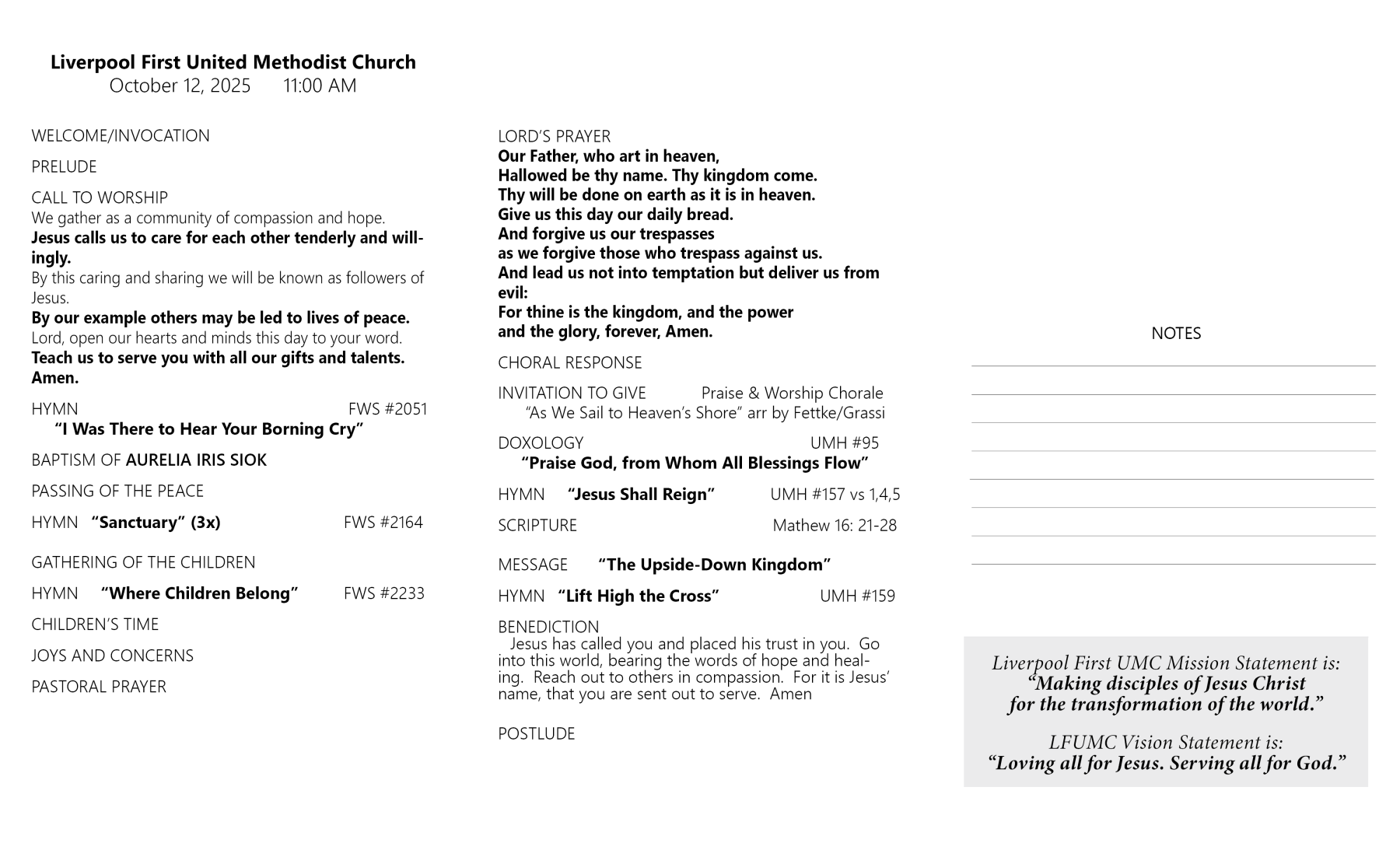 Sunday Worship Bulletin - 10/12/2025 11:00 am